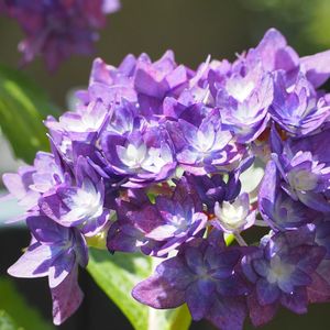 今日のお花 💠アジサイ💠 ①真っ白だった紫陽花が古くなりグレーっぽくなったので3年前に掘りあげました。しかし根っこが残っていたのか芽が出てきて今度は真っ白が蘇りました🎶 ④ダンスパーティー、ブルーが強くなりました