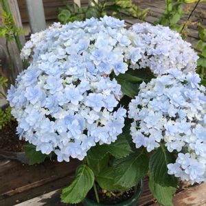 中庭で育ててきたアジサイ「テマリテマリ」。 だいぶ茂ってきたので、今日から玄関前の日向に。 思い起こせば、去年の11月…。 根ぐされしかかっていたのを助け出したんでした。 お水のやり過ぎに注意です!