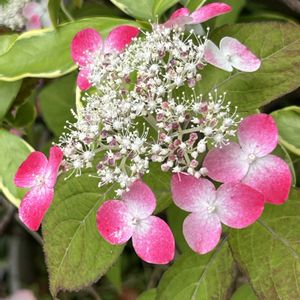 やはりアジサイ好きだな〜。。 この中で気になるのを、アップ📷しました。 2枚目の、黄色が入ってる斑入りアジサイ。 3枚目の、名前不明白色アジサイ。 4枚目の、赤色は紅? うちにも紅がいた時期あったんですけど、消えちゃったんです。