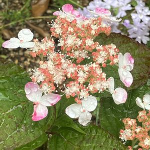 家のアジサイも咲きはじめました 1枚目〜3枚目 ヤマアジサイ 紅と藍姫 やっとまともに咲いた紅と先月迎えた藍姫 どちらも楚々としてなんて素敵 一気にヤマアジサイのファンになってしまいました 4枚目 カラフルランジア オーロラ 昨年迎えて初開花です カラフルな斑入りの葉っぱに小ぶりなお花 小ぶりに咲くのが正解なのかわかりませんが😅 良い雰囲気です 5枚目 彩の里 初年度は可愛いピンクでしたが、以降ずっと青く咲きます 来年はピンクになるよう調整チャレンジしてみようかな