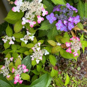 極小サイズの山アジサイ2種類です。GWに箱根の湿性花園に行った時に記念に連れ帰りました。 一枚目 紅 赤いはずなのに赤くない😅 二枚目 九重至宝 紫色のはずなのに… 来年も花が見られるとよいのですが😊