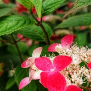 ヤマアジサイ 紅❤️ 少し前から咲いて だんだんと赤くなってきました♪ アジサイって色の変化が 楽しめるからいいよね〜☺️
