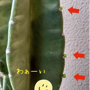 おはようございます☀ 朝から嬉しすぎる発見(☆∀☆)キラーン! 出てます👀 寝ぼけまなこなので もう1回見ても 出てます👀 ε٩(๑>▽<)۶з ❤︎15さんからの柱サボテン🌵🌵 感動の朝です❤