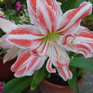 おはようございます☀ 今年も咲きました😍 背丈短いけど〰🤣 アマリリス💕 昨日は寝落ちして💤 今朝ニュース見て 驚きました( ゚д゚)ハッ! 関東地方のゲリラ豪雨に 雹が降ったとか❢ 被害無かったですか? 雹の不意打ち 怖いですね(ノ*0*)ノ