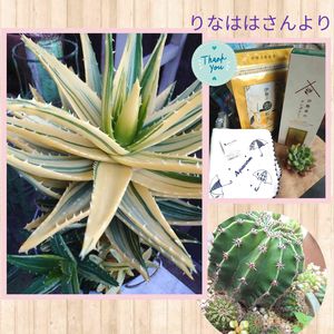 こんばんは✨ 今日はアガベの日なのに PIC撮り忘れて 最近撮ったアロエと サボちゃんで 🏷⸒⸒勝手に7日は爪エッジと棘の日 参加します🤗 名無しサボちゃんは 叔母の家から強奪品🤣 子孫いっぱいコロコロ❤ 先日りなははさんから プレ企画お礼の素敵便🎁 頂きましたm(*_ _)m 可愛い多肉、 伊勢茶のラングドシャ 伊勢の和紅茶 あおさのり 季節の柄☂️のハンカチ またまた沢山頂きすぎました🥰 プレ企画で日頃の感謝を 込めるはずが またまたありがとうです❤