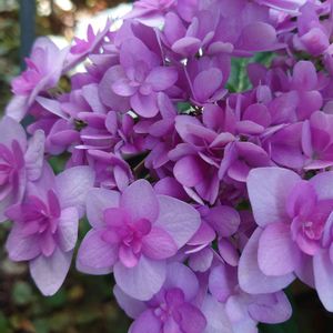 おはようございます デッドゾーンに 紫陽花の花 日光不足の場所だけど 華やかに見えます🌼*・ 2年前の挿し木のひとつ 今頃喜ばせてもらって 今朝のちっちゃい幸せ *.(๓´͈ ˘ `͈๓).*