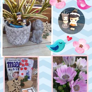 今日も春の陽気☀ はい私の心も春うららです•*¨*•.¸¸♬︎ ミルさんから🎁❤️ ↖️素敵な鉢に 大きなエンジェルさん👼 頂きました🥰❤️ 早速缶ごと入れてみました😆 ふくよかなエンジェルさん👼 私の肉の付き方に似てるわ(๑´ლ`๑)笑 ↗️実は私笑われるけど 「天才バカボン」も好きで🤭 覚えててくれて バカボンのキュージョン ((*///Д///*))イヤーン 可愛すぎる❤ 大好きなMOCさん🥜は🐤を持った ねこちゃん ↙️他にも 🍀ミィのコースターに クロス 🍀あまおう🍓の豪華 お菓子他 🍀フレバーティ 大好きなものいっぱい セレクトして頂いて ありがとう〜💛 ·͜·♡ 嬉しくてニコニコ 明日も頑張ろう🤗 お花は先週お迎えの オステオスペルマム セレニティロジータ 覚えられないから これもPICで残します🌼*・