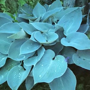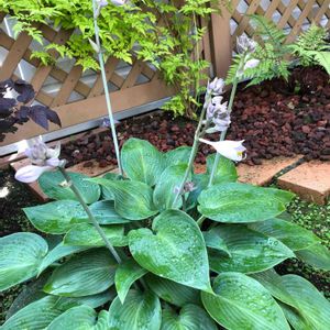 最後は…… 葉っぱばかりupしてるけど、地味に花も咲いてますよ〜ということで、ホスタ・ハルシオンを(=^^=)♪ 往年の人気品種だけあって、ブルーグリーンの葉が際立ちますよね🥰✨