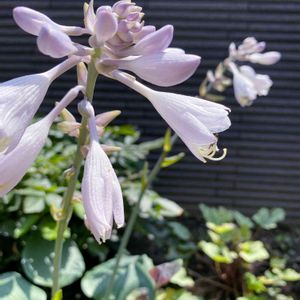 ✳︎ホスタ ハルシオン✳︎ 咲きました! 夏は緑が濃くなり、勢いを増しつつ、その反面色々と傷みやすくもあって、小さいながら鬱蒼と感じるシェードガーデン… そんな中にあってこの薄紫の涼しげな色合いはひとつの癒しです^ ^
