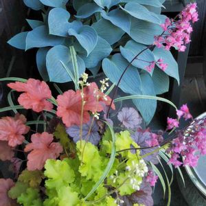 ヒューケラとホスタのハルシオン 色の相性の良さにいつも見とれています