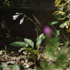 ホスタ“ハルシオン”** 花壇の奥でひっそりと。