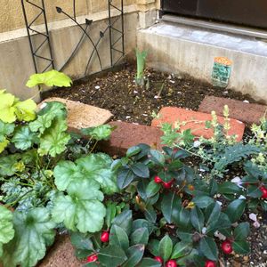 北側恐竜花壇🦕が恐竜感を失って、 日差しからの避難所になってまいりました💦 しかし!新しいカラーリーフもお迎えしました(≧∀≦)✨ 私はどうやらカラーリーフに目がない💕 だんだんフキの居場所がなくなるよー(^◇^;) 北側花壇も、この端っこのあたりはお日様が当たる様子。 この時期限定! 今年のホスタはまだ小さそうなので 一年草をお迎えしてみました!