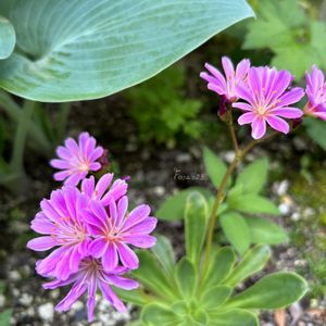 ちょっと花付きが悪いレウイシアもピンク🩷 ホスタ ハルシオンの葉っぱの綺麗な事🌿✨ (5/31撮影) 今日はコメント閉じます🙏