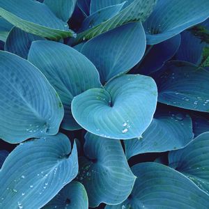 💮ホスタ💮 葉っぱ10枚位の苗、二株植えたのが二年前。確かハルションという名前だったと思います。 想像してた通りに成長してくれてうれしい🥰 雨が似合いますね〜☺️