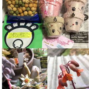 容舞后さんの可愛い鉢をポチりおやつも頂きました。 ありがとうございました💕 朧月の可愛い花↙️ このこは外でも元気にしてますね。 部屋に入れてるのは花が咲きました。 胡蝶の舞は釣り鐘のオレンジの花が咲きました。↘️