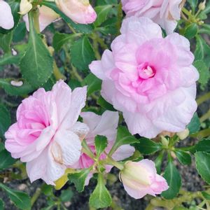 おはようございます☀ 🌹グリーンアイスと🌹フラワーカーペットローズ アップルブロッサムが咲いてくれています💕💕 🌹グリーンアイスはいただいた時はお花が咲いていたのですが、切り戻し後、1株が何故か枯れ始めたので慌てて挿し木をした株との合わせで、ここまで育ってくれました💕 🌹アップルブロッサムは何度も🦌に食べられてしまい、なかなか大きくなれなかったので、鉢上げしてフェンス側に置きました。ここまで育ってくれて良かった〜💕