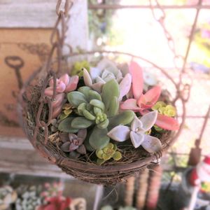 ミニカゴハンギングの多肉ちゃん、寄せ直しました💗 今年もあと一ヶ月、なんて早いんでしょ💦 今月もよろしくお願いします💕