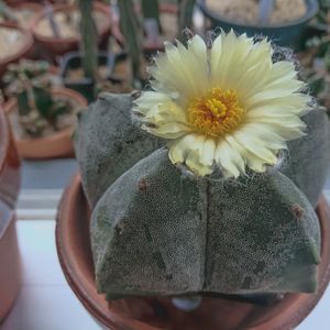 今日は雨 頑張れ恩塚鸞鳳玉! 今年最後の花かもしれないのに😅 Astrophytum myriostigma cv.