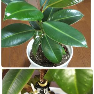 艶やかなゴムの木。 たしか100均だったような…。 数年前に青葉城へ行った時の伊達政宗が守ってくれてます☺️