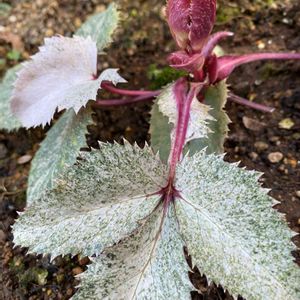 花芽でしょうか? 新芽かな? クリスマスローズ ステルニーダイヤモンドダストです 昨年末に来たので 今年の花は期待してなかったのですが、もしかしたら咲いてくれるかな〜 夕べはこの冬最低温度 やってしまいました❗️黒法師が霜で全滅に‼️ ショックで しばらく立ち直れないです