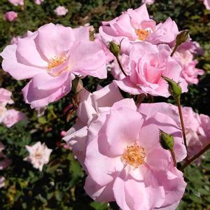 京成バラ園、冬の剪定講習会🎶 早く着き過ぎました😊 10月の秋バラの時には1人で6時間いました🤭 バラはまだ ちらほら咲いています❣️ ゲート前に10本位の木立ローズうららが綺麗に咲いています。開花50個、蕾50個位で目立っています🤗