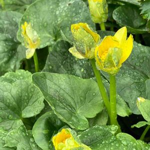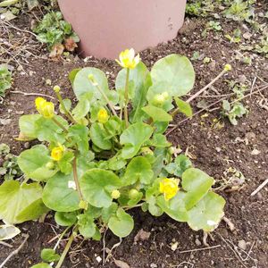 姫立金花(ヒメリュウキンカ)👸👑*゚ 雪の山から発掘 宝探しみたいで楽しいのよ💠 チビ達もわさわさ出てきてますよ🌱🌱🌱 お花はまだかかりそうです(๑ ́ᄇ`๑)🌼 まずは一安心よ🎶