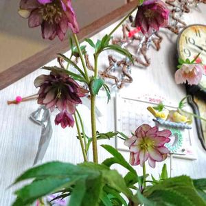 花弁の裏側はパープルのクレヨンでサッサと塗った様なイメージ 花弁細めのバイカラーにも見えます◡̈⃝︎⋆︎* リーフでお迎えしたクリスマスローズさん💕 お花が長持ち(✿´ ꒳ ` )ノ♪ずーっと咲いてくれてますꈍ◡ꈍ♡ 良いお花に出会えたようです🤗