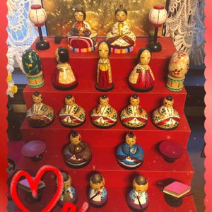 ブティックの 窓辺にも お雛様🎎 こちらは 珍しいこけしのお雛様🎎