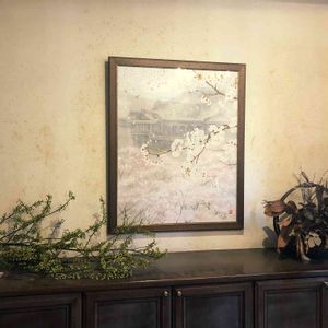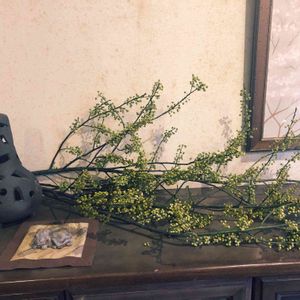 ブティックの 玄関の お花は ドライフラワーの盛り籠と あおもじの 枝ものを 置いてあります🙆♀️ 絵🖼は 清水寺の 桜🌸です🤗