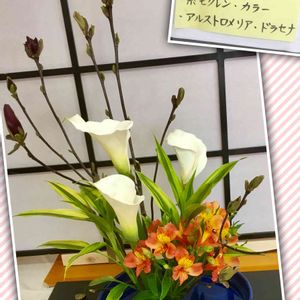 こんばんは😊 今週のお花とボランティアさんの作品と名前がわからない花😅