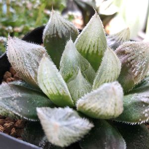 おはようございます☀ ハオルチア 森の妖精🌵 白くて、モケモケで、 透明で、名前どおりの イメージの子です(*´∇`*)