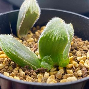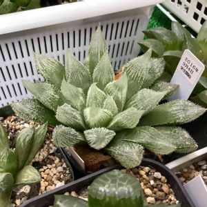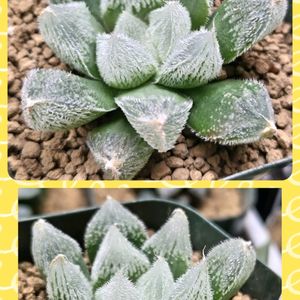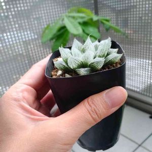 迎えたばかりのハオルチア 森の妖精です🥰 可愛いよね〜💓 妖精シリーズって欲しくなりますね🧚😍 森の妖精はシルバーボール×白銀絵巻の交配らしいですよ🤔シルバーボールは どんな子かな??白銀絵巻はヤフ○クでも見ましたよ😄🍀白銀絵巻の良い要素を受け継いでるのね😃