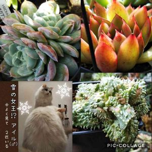 毎月15日はいちごの日〜 チョロッと参加します 雪積もった....... ↖️ギリギリ雪被らない軒下、大渋滞 ↗️スヨンは強い子な気がする(ナントナク?) ⬅️さすがにね~ポーチュラカリア属は部屋入れたわ さなぼてんちゃんのカエルリメ鉢💚に雅楽の舞 何か植えようととってあるストロベリークリームラテのパッケージ(植えてないけど) ➡️七福神は雪の下 ↙️唐印は夜間保護チーム ⬇️サンライズマム 凍らせたらアウト(古株は案外強い) ↘️アクアフェアリーも軒下 🀄娘にメガネ拭きを乗せられた豆吉