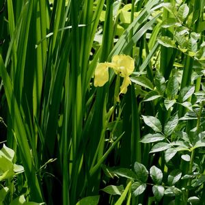 【キショウブ】 黄菖蒲 アヤメ科 多年草 抽水帰化植物 水辺に映える 和の美彩フォルムに 魅せられて… 観賞用として明治時代 日本に導入されるも 繁殖力が強く 日本の侵略的外来種 ワースト100指定種という ビオトープなどの為に 利用される事も多いが 高原を美しくする会の方は 集結して根ごと抜取る 駆除作業をしているという 増え過ぎを用心し 初夏の庭を愛でて〜