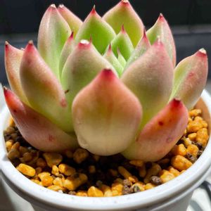 徒長して迎えたピンクザラコーザ 少しいい感じに形が整ってきたような 葉っぱは薄っぺら 徒長は直らないみたいだから新しい葉が育つのを待つしかないね🌱