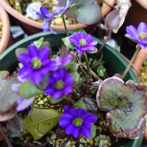 先日の植物園の山野草展 最終日でしたがこの2つ雪割草❄GETしました💟💜 植え方も教えて下さったので 花を楽しんでから頑張って増やしたいです👍