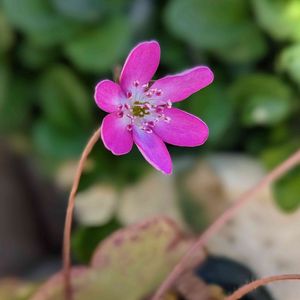 雪割草、2つ目の開花です🍀 この子は濃いピンク💕💕💕💕 こういう色味のカタバミあるけど、それよりもずっとずっと目立つ色です😊