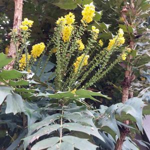 セイヨウヒイラギナンテンのお花のようですが、この時期に花?🤔 学名Mahonia x media メギ科ヒイラギナンテン属