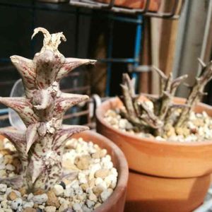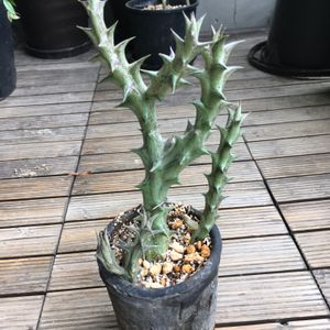 メルカリで新しいガガイモちゃんをお迎え☺️7点セットでお買得でした✌️ 謎の暗黒竜は黒竜角との違いが楽しみ^_^ 1つは大丈夫か心配なほど萎れてたけど、発根してるし元気になるって信じてる! 自分は未発根でもサボテンも多肉も植え付けの時に水やる派 しっかり砂塵ぬいとけば中に水が溜まる事も無いし、水滴出なくなるまで振って硬い地面にトントンしとけば、土がいい感じにしまって未発根でもぐらつかない! これで根腐れした事は無いからいつもやってます✌️