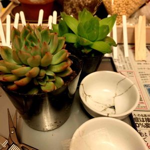 お節のお重に入っていた有田焼の小鉢を一度砕いて、なんちゃって金継ぎで鉢底穴を作りました(さすが有田焼!硬くてなかなか砕けませんでした) 昼間のベランダ作業はもちろん楽しいけど、お部屋でYouTubeの園芸チャンネルを見ながら作業出来る多肉も楽しい!!ハマりそうです♪