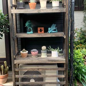 D.I.Y.‼️ 年末から作成していたエアコンの室外機カバー棚が完成しました❗️ 正月休みに塗装してやっと出来上がりました。 2×4材を使って同じものを2つ作成したので少しは収容力UPです。 室外機カバー棚 (W90cm D40cm H182cm)