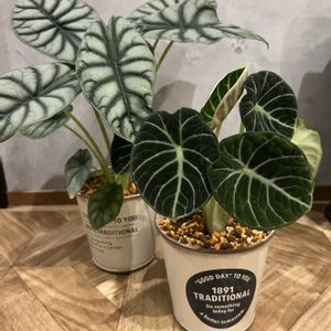 3号ポットサイズで買ったアロカシア どっちも大きくなってきたので植え替え🪴 シルバードラゴン裏の葉脈 かっこよくてついつい見てしまう🤭 ニンジャはよく新芽を出してくれる🥷✨️