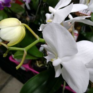 🍀🌻🪴💐🌹🌻🍀 🍀🩷胡蝶蘭(コチョウラン)🩷🍀 近くの園芸店の胡蝶蘭です 💐ピンクの胡蝶蘭の花言葉は(幸福が飛 んでくる)、白い胡蝶蘭 は(純潔)、(清 純)、紫と青い胡蝶蘭 は(誠実)、(尊 敬)、黄色い胡蝶蘭 は(進出)、(活 発)、(商売繁盛)です 💐胡蝶蘭はラン科コチョウラン属(ファ レノプシス属)の植物です 💐花の特徴はバラバラの方向を向いて 咲くタイプと、同じ方向を向いて咲 くタイプの2種類あります 💐胡蝶蘭の種類は世界各地で数万種以 上あり、その中でも小輪、中輪、大 輪の3つに分かれています 💐開花時期は1~4月ではあるものの、 近年ではその人気の高さから温室栽 培技術によって通年で花を咲かせる ことも可能になっています 🍀🌻🪴💐🌹🌻🍀