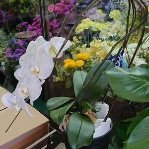 コチョウラン(胡蝶蘭) 木に着生させてあるのも見かけますが、これは鉢植えでした。