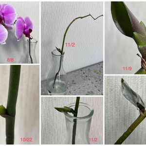今年6月…3株で300円だったアウトレット胡蝶蘭 花後、一株づつ分けて お世話して来ました。超初心者です。 下の方の葉がシナシナして来て🤨 そんなタイミングで水やりしてたんですけど 変化なく😩 ダメかと思ってましたが、新しい葉となんとこれって『花芽』でしょうか? だったら嬉しいけど、咲くかどうか、咲かせられるかどうか… 教えてください😅
