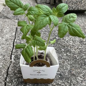 今頃だけど… ミニトマトの苗が出来たので鉢植えした😅 pic①大きく見えるでしょう😊 6㎝〜7㎝程で、とても小さいんだな😅 種蒔きから40日経ってます😊 見た目はトマトの葉っぱですね😅 pic②8号のトマト鉢に植えた🪴 苗、小っさ🤣🤣 念のため、トマト専用の土を使用! もしも育たなかったら土のせいにしたくない🙂↕️ウンウン pic③実は、みどりの募金で購入したペーパークラフトポットの栽培キット。 付属の土を水で膨らませ種を植えるんです。 pic④組み立てた紙製ポットの大きさは手のひらくらい この大きさで苗が出来るの?っと思ったくらい、小さい物👀 pic⑤種は5粒蒔いたんだけどね… 3本育った😊 🍅🍅🍅実ってくれることを祈る🙏 写真は5枚しか載せれないから途中経過は割愛しました🙇♀️