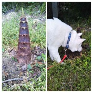 散歩道脇のくさはらでポツンと一本見つけましたタケノコ❓ワンちゃんも初めて観る植物に興奮気味なんか嬉しくなりました。