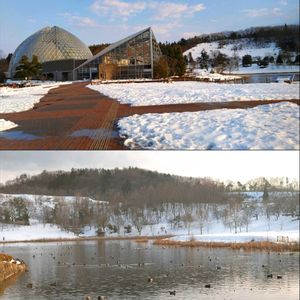 ①新潟県立植物園の温室へ行きました。 GSの昔のアルバムを見てたら2年前の今日、カイドウツバキ(ハイドゥン)が咲いてたんです。 ②残念。まだ蕾ですが、まん丸でかわいい蕾です🔴🔴(•ө•) 洋蘭はパフィオ、シンビジウム、デンドロビウム等少し咲いてました。
