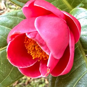 『いのくち椿館の椿展』③から 【ハイドゥン】(2月1日) ベトナム椿とも言われる、ハイドゥンです(*,,•ᴗ•,,)🍊 この蝋細工のような花弁の質感が、たまりません(,,ò᎑ó,,)وスバラシイ !