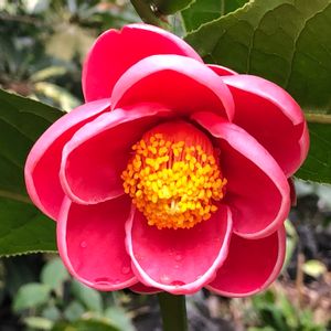 公園で他のツバキはどんどん咲いてるのに、なかなか開かなかったけど〜‼️ 待ちに待ったハイドゥン🌺咲きました〜✨ コロンと丸い花びらが可愛い〜🔴🟡🔴